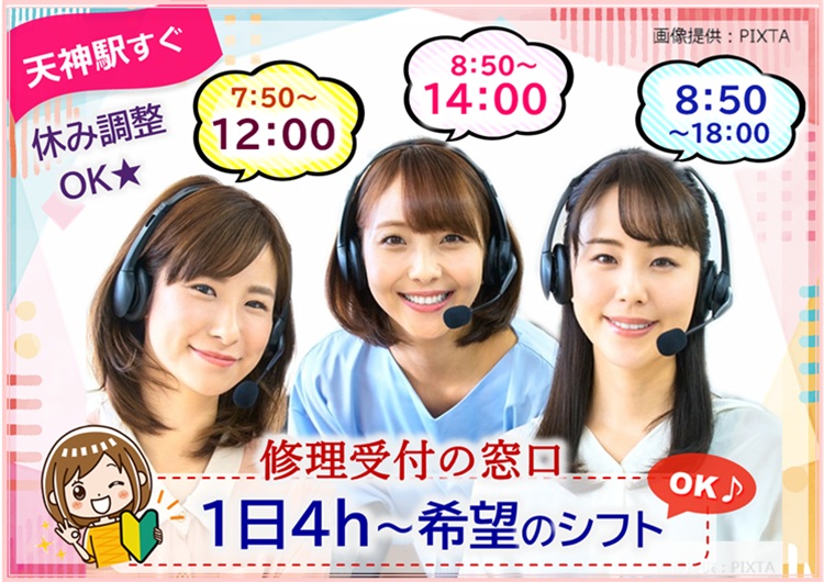 1日4時間~◎学歴不問◎シフト多数&ご相談ください!TOTO製品の修理受付業務/天神