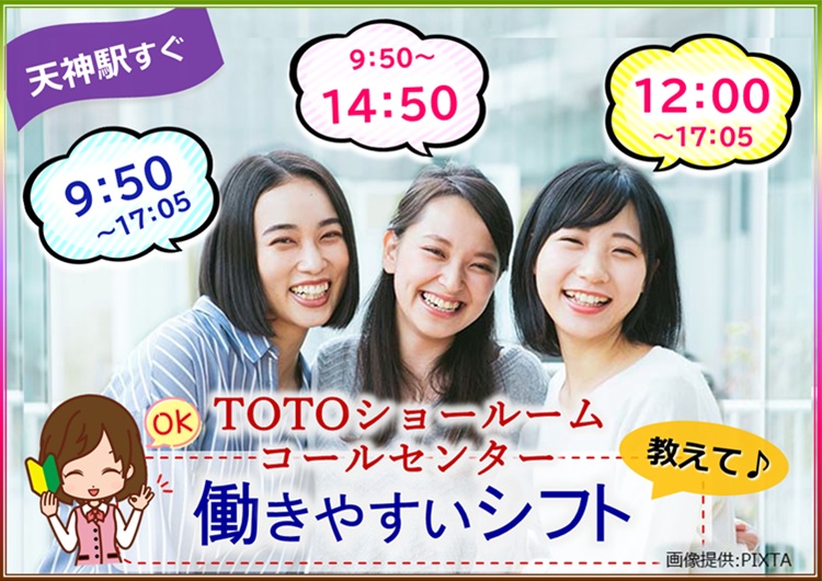 週3日~◎9:50~17:05シフト可能な方 採用優遇中!◎TOTOショールームのお問い合わせ対応@天神
