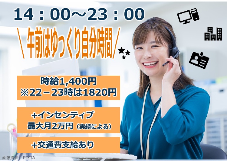 14-23時勤務|週4~|高時給1,400円!最高時給1,820円!!|海外通販アプリに関するカスタマーサポート 博多