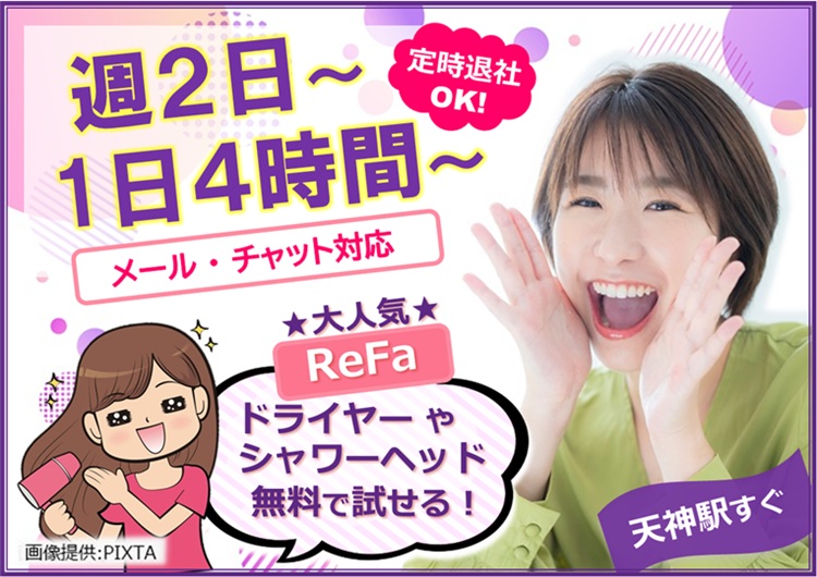 学歴不問&未経験歓迎!メール・チャット対応|週2日~&1日4時間~勤務OK|残業なし 天神
