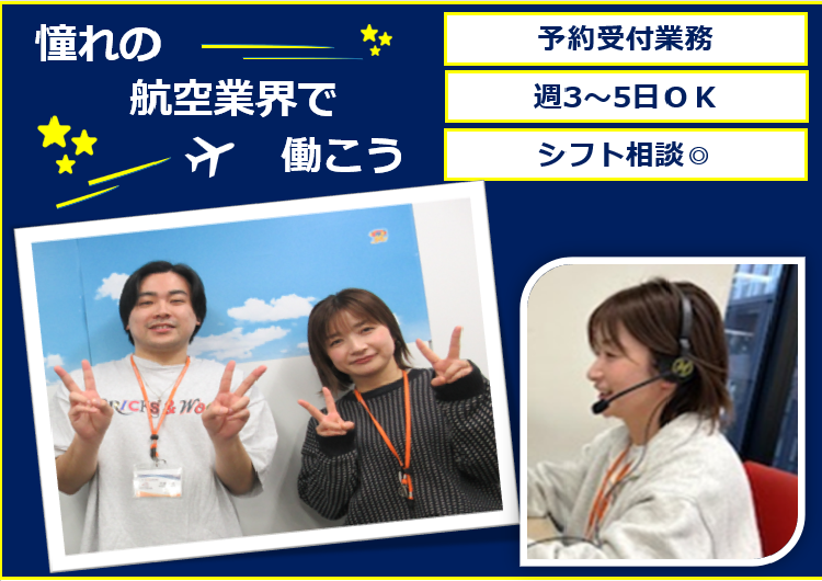 増員大募集|憧れの航空業務|大手航空会社予約受付コールセンター|週3~5日|ショート勤務あり|土日祝手当あり|天神駅チカ