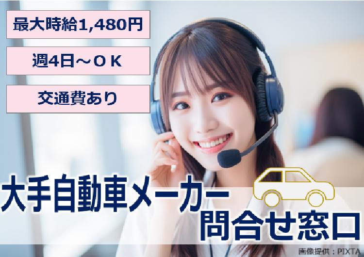 高時給1,320~1,480円|週4~OK|年末年始休暇あり|大手自動車メーカーのお客様相談窓口@天神