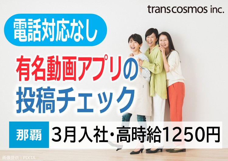 【3月入社】電話無しなのに高時給1,250円_SNS動画の審査・チェック業務_那覇市【TKO係】