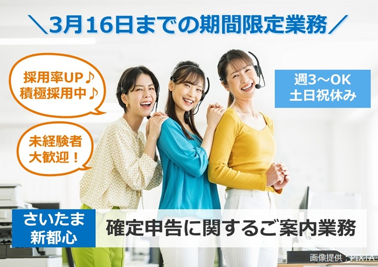 3月までの短期!確定申告に関するご案内窓口(オペレーター)@さいたま 新都⼼