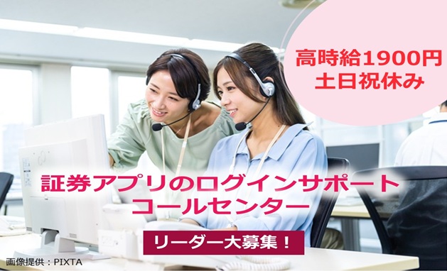 【期間限定】★リーダー募集★高時給1900円!土日祝休み|証券アプリのログインサポート専用窓口【梅田】